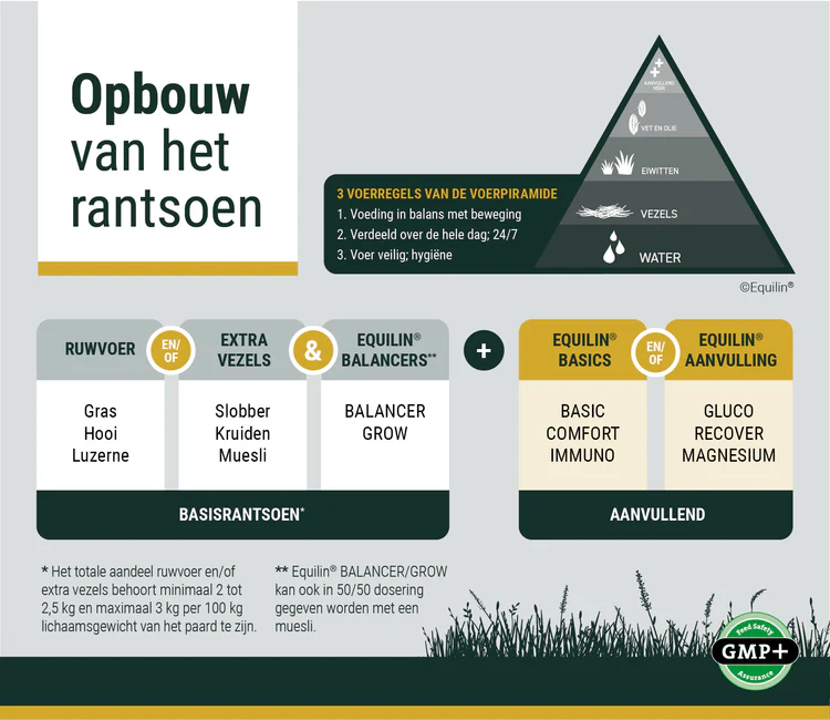 Een 'normaal' rantsoen is voldoende geschikt ruwvoer met in ieder geval een mineralen aanvulling en een aanvulling van de goede eiwitten. Om een normale mineralenbehoefte te dekken met krachtvoer is minimaal 2 kg nodig voor een 500 kg paard.